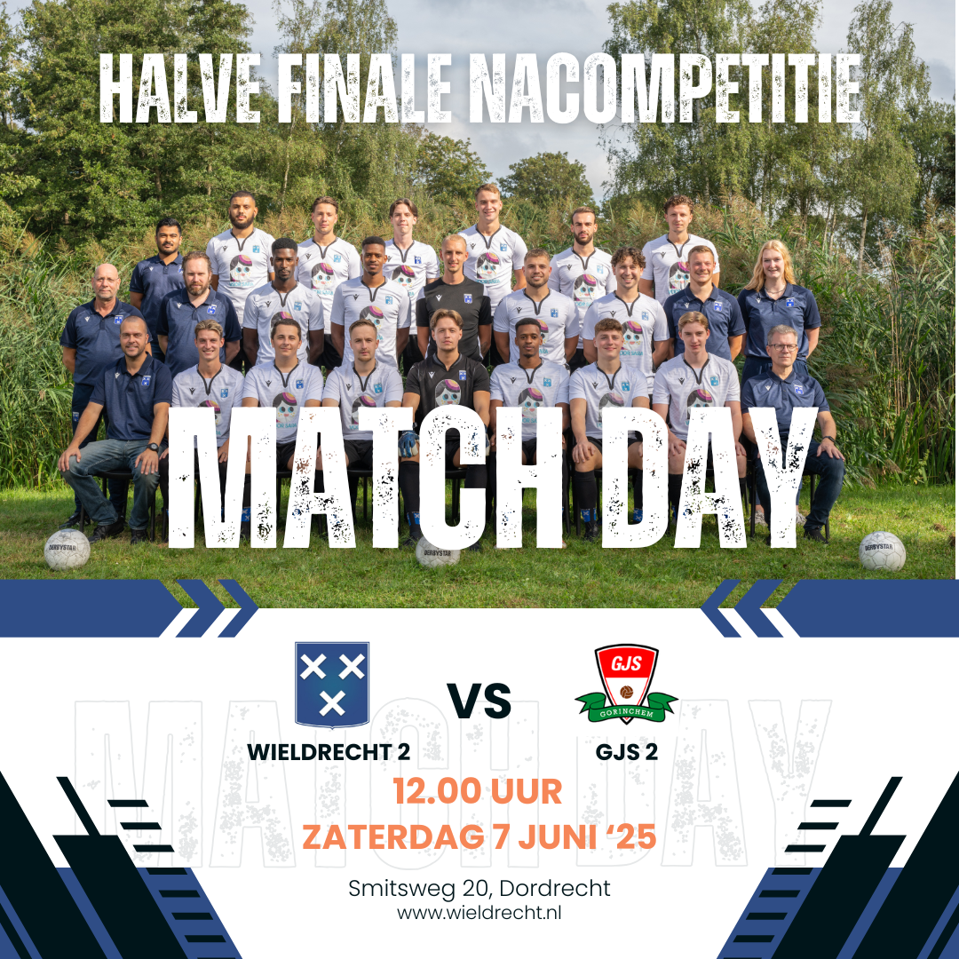 Vandaag is het zo ver voor de mannen van Wieldrecht 2: de halve finale in de nacompetitie. Om 12.00 uur nemen ze het op tegen GJS 2 en kunnen ze jullie support goed gebruiken!